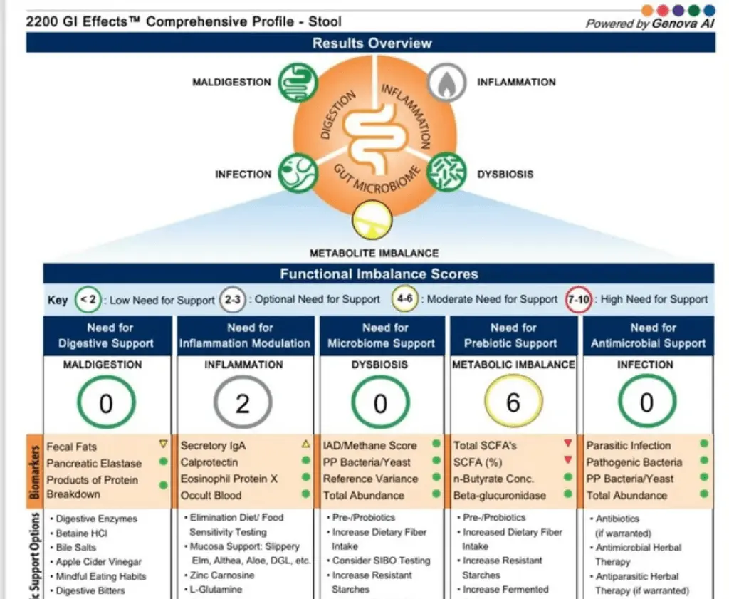 Receive Results + ReportResults are available 10-14 business days after the lab receives your sample. You’ll get a detailed report with clear action steps to support gut healing.