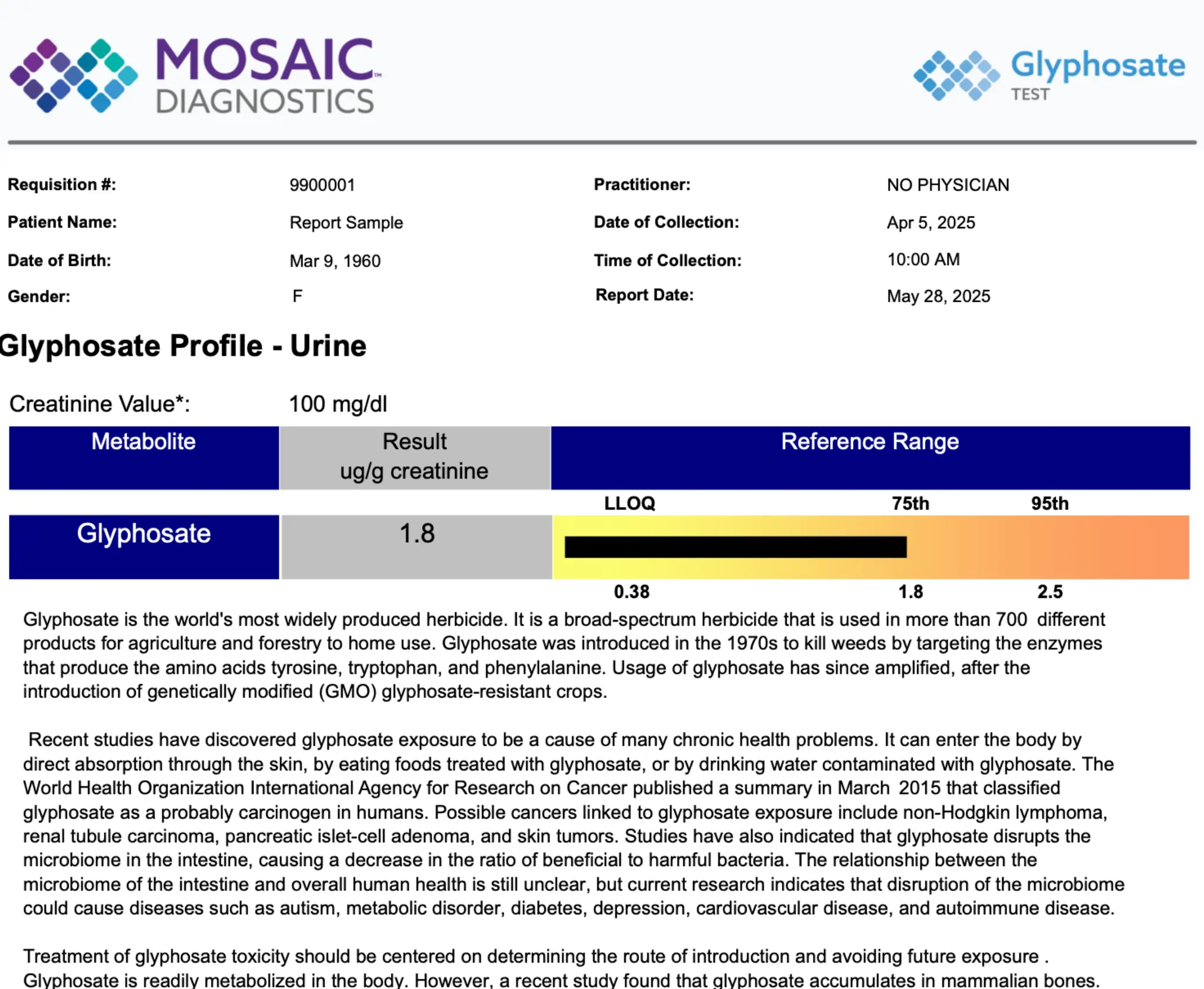 A urine test that shows your body’s exposure to glyphosate, a widely used herbicide found in food, water, and the environment.