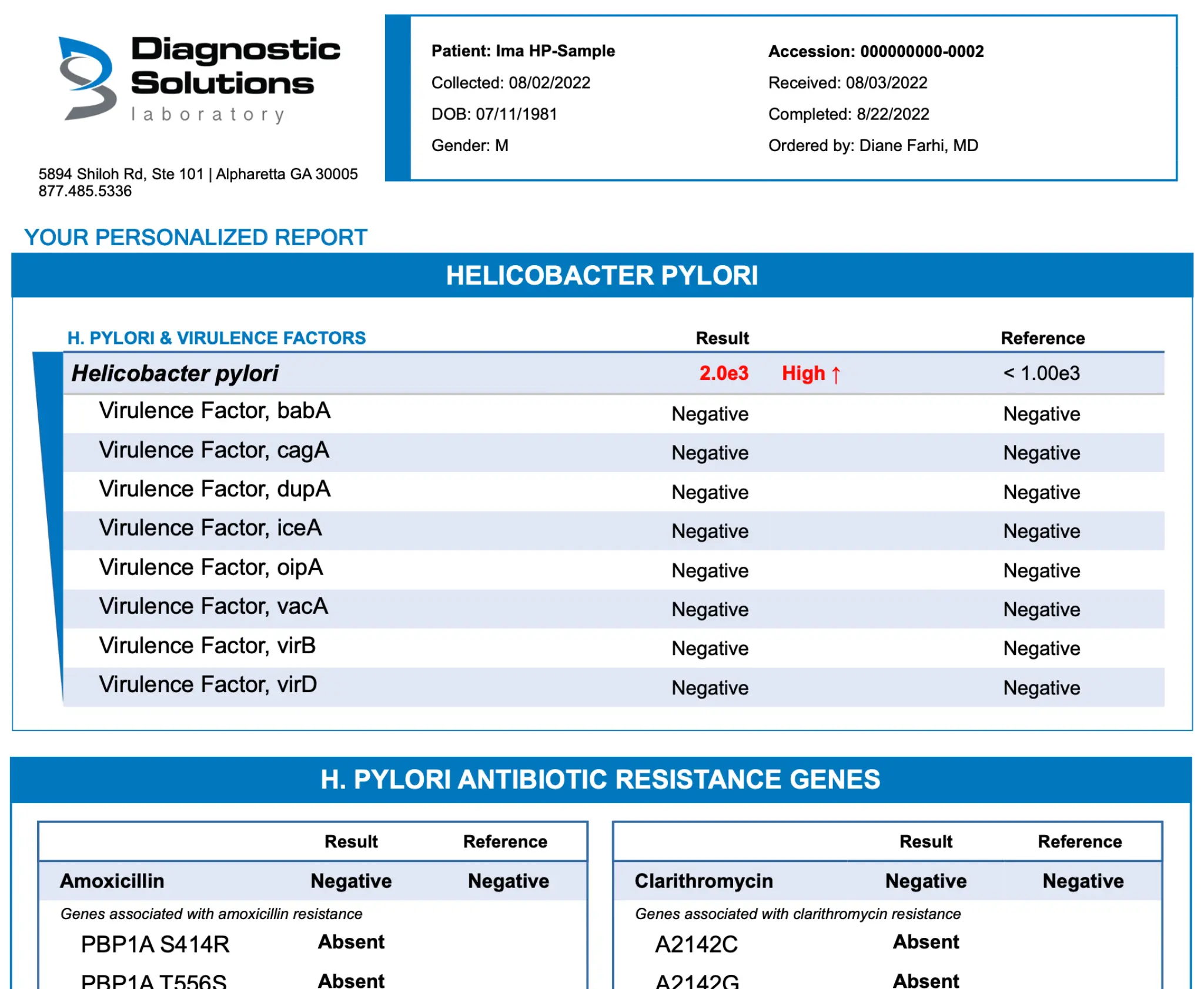 A non-invasive stool test that detects H. pylori and reveals whether your strain is resistant or high-risk, so you can take action before ulcers or gastric damage develop.