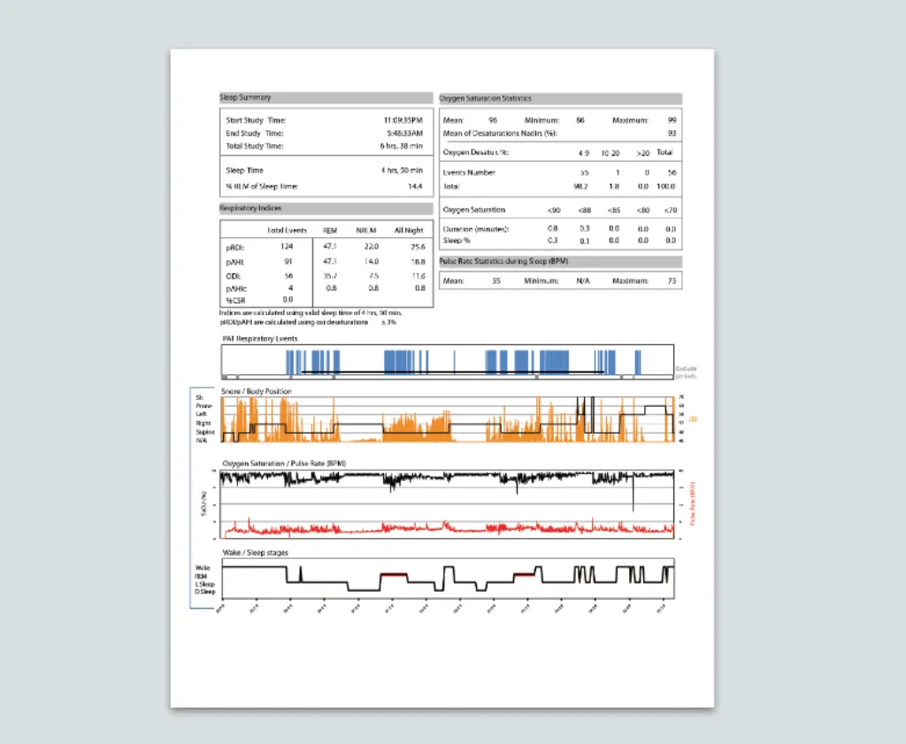 An FDA-cleared, at-home sleep study that measures your sleep quality and whether you have sleep apnea.